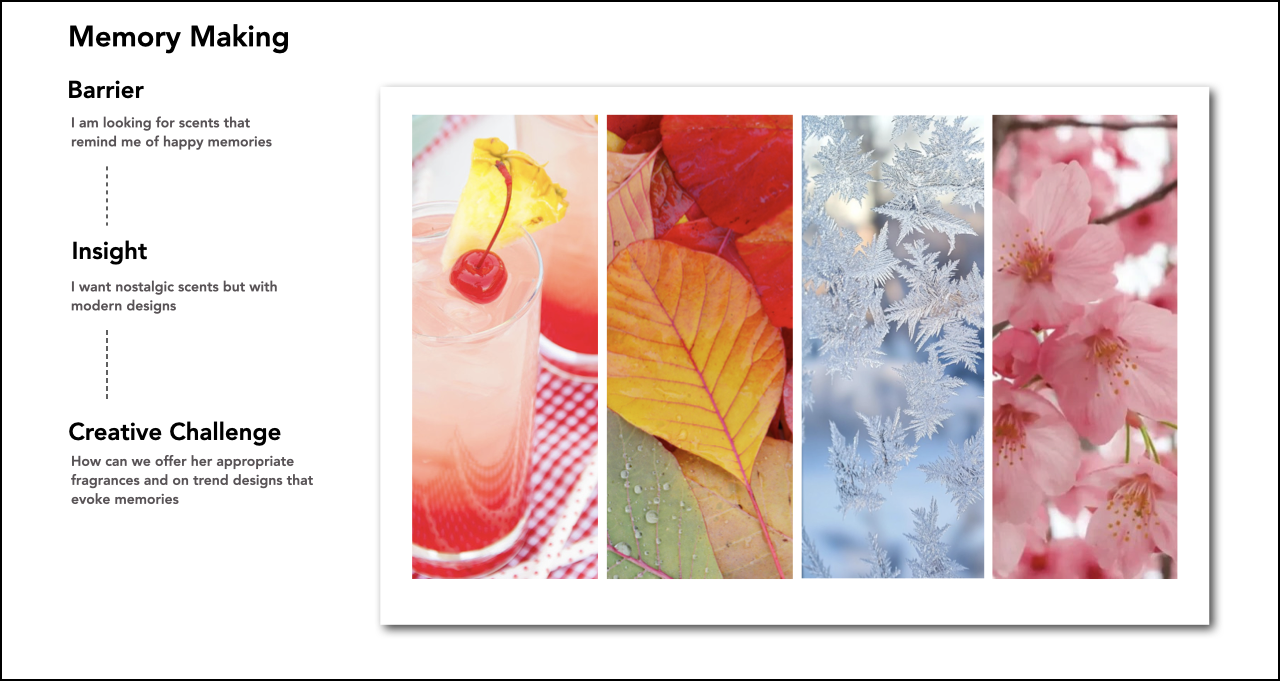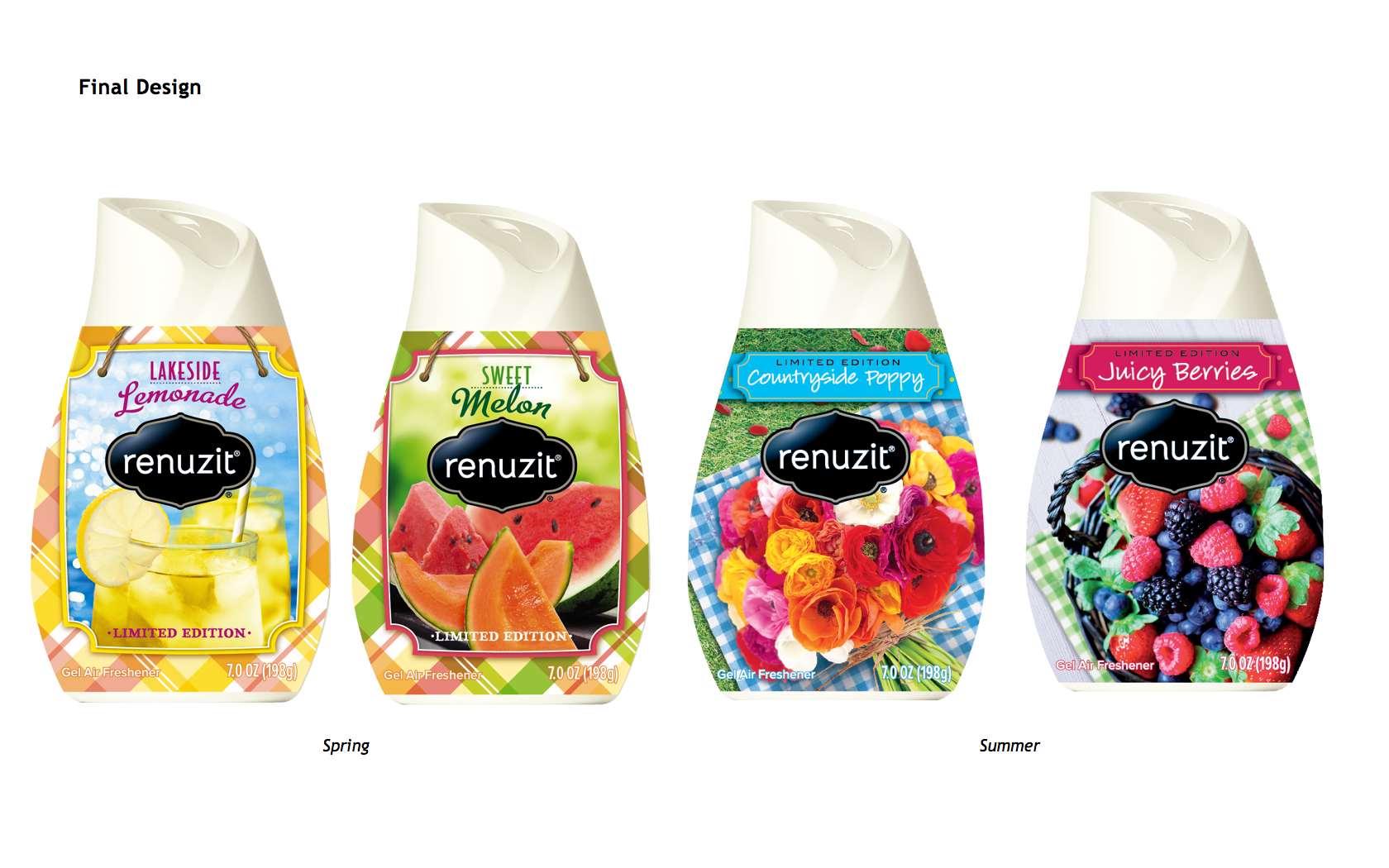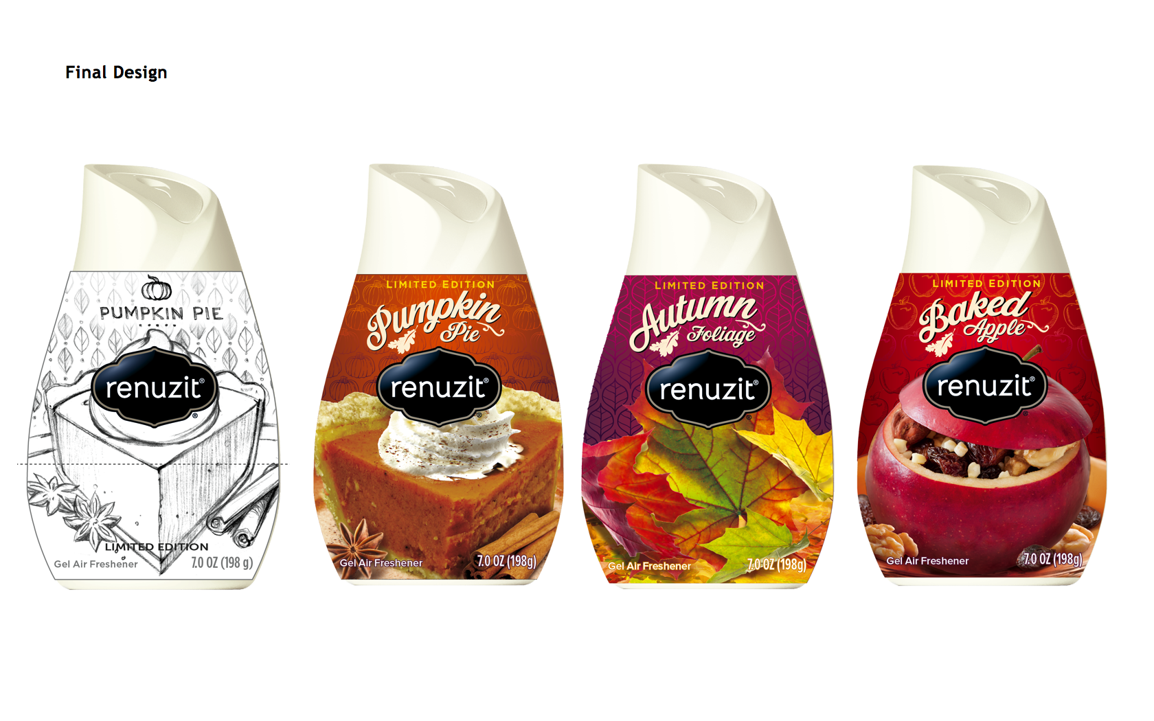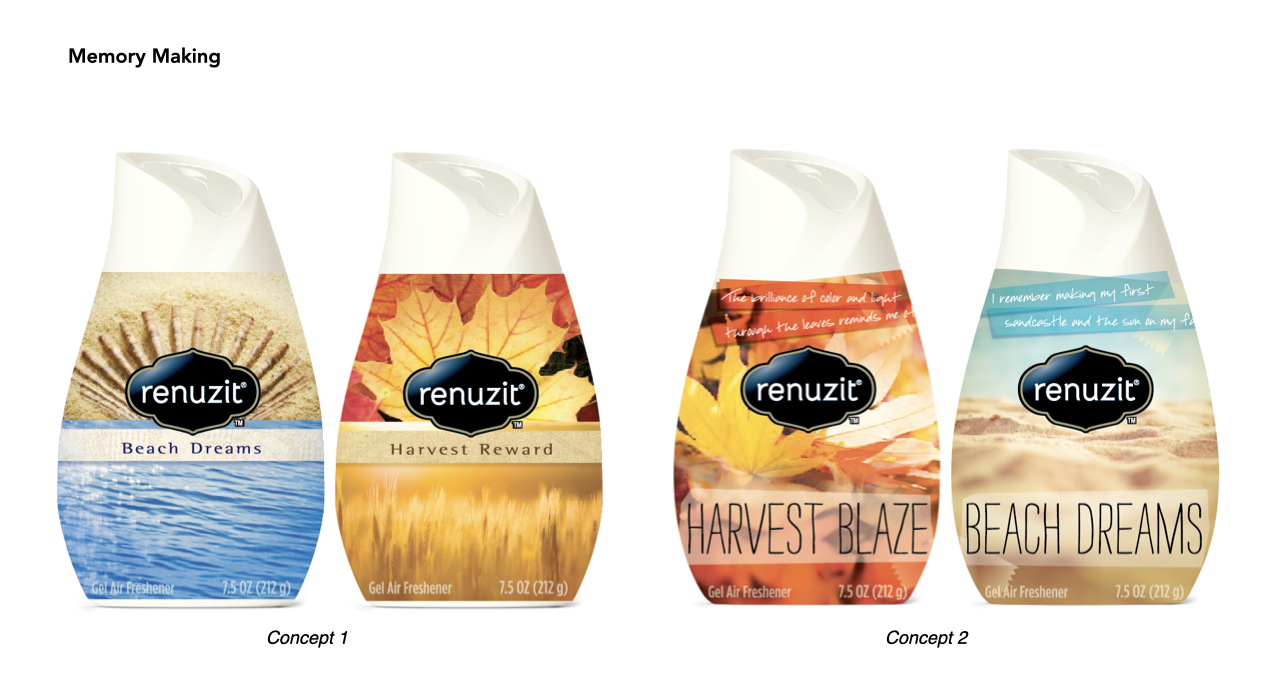 Renuzit® expanded their seasonal program with evocative scents and trends based on designs that drive impulse purchases through the seasons. Concepts needed to clearly differentiate from the rest of the Renuzit portfolio